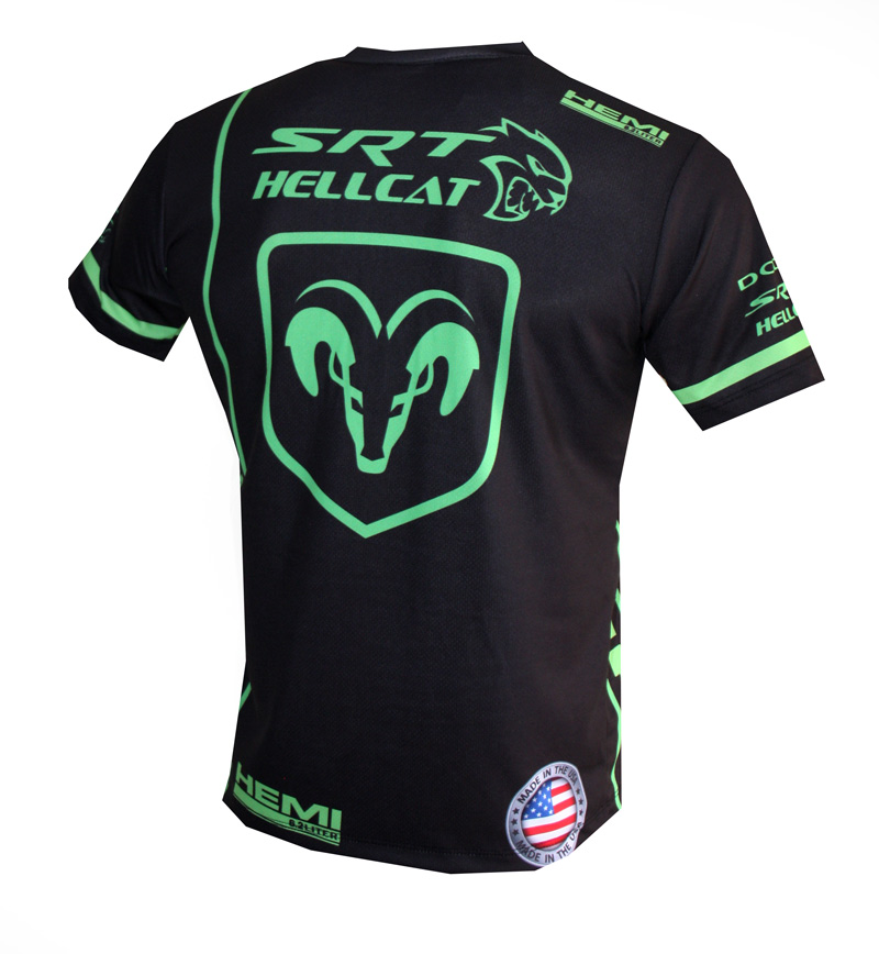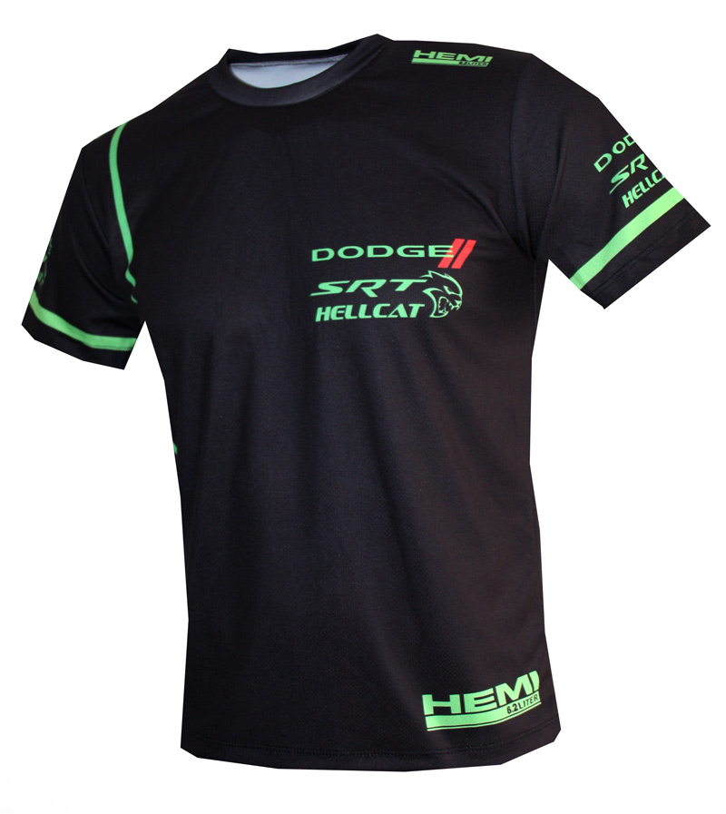This "Dodge" t-shirt is fully and overall printed with the highest and finest printing technology available, called sublimation. This is the only way to achieve such a cool look and it also makes the colors of the print last much longer. This t-shirt is made of 100% breathable polyester and it is very light and comfortable to wear.