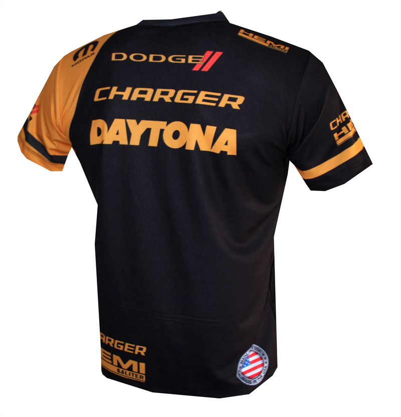 This "Dodge" t-shirt is fully and overall printed with the highest and finest printing technology available, called sublimation. This is the only way to achieve such a cool look and it also makes the colors of the print last much longer. This t-shirt is made of 100% breathable polyester and it is very light and comfortable to wear.