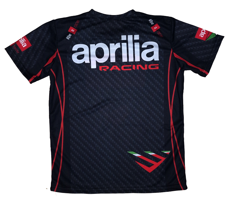 This "Aprilia Sport Production" t-shirt is fully and overall printed with the highest and finest printing technology available, called sublimation. This is the only way to achieve such a cool look and it also makes the colors of the print last much longer. This t-shirt is made of 100% breathable polyester and it is very light and comfortable to wear.